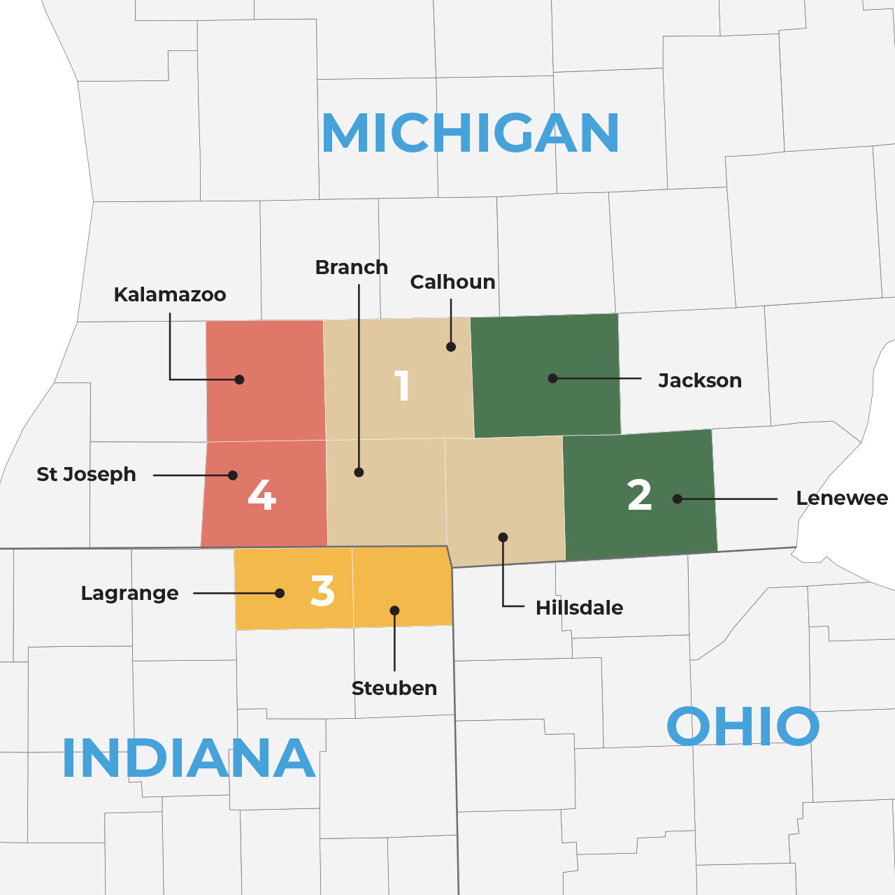 Branch, Calhoun, and Hillsdale Counties
